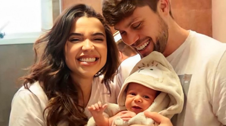 Paula e Breno, casal que se conheceu no 'BBB 18', posam ao lado do filho — Foto: Reprodução/Instagram
