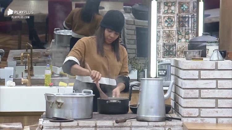 Enquanto os peões concluem suas atividades na área externa da sede, Tays capricha no tempero e prepara o almoço dos participantes . Confira! .