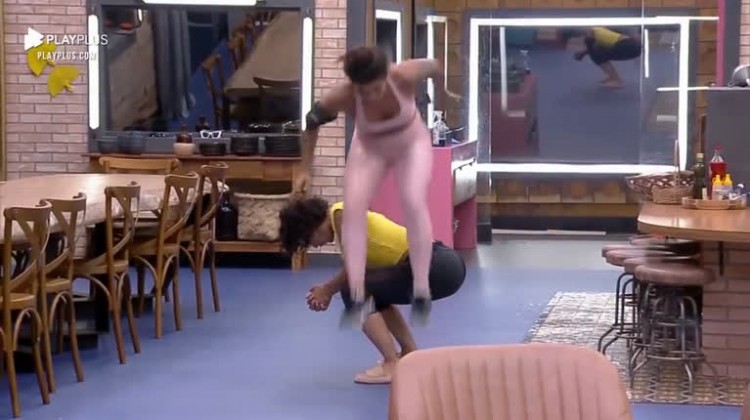 Marina brinca de pular por cima de Aline – A Fazenda 13