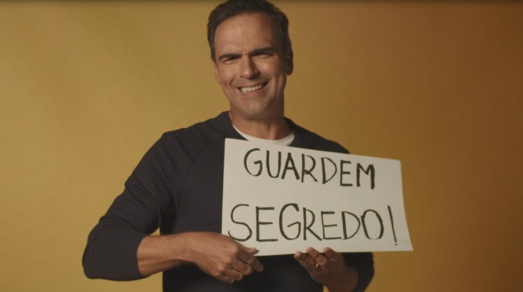 "Gente, desculpa, eu queria muito adiantar umas novidades para vocês, contar algumas coisas que descobri, mas não me deixaram contar nada", brincou Tadeu, enquanto mostrava spoilers em cartazes que segurava.