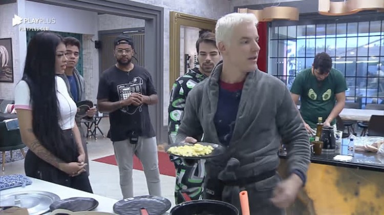 Participantes fazem fila para o café da manhã - Power Couple Brasil 5